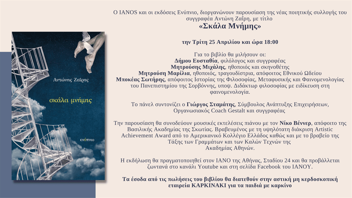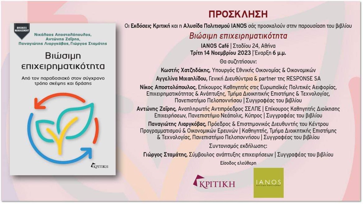 Την Πέμπτη 3 Νοεμβρίου 2022, ώρα 18.00, στην αίθουσα εκδηλώσεων του βιβλιοπωλείου ΙΑΝΟΣ (Σταδίου 24, Αθήνα), θα παρουσιαστεί από τις εκδόσεις Παπαζήση το νέο βιβλίο των Αντώνη Ζαΐρη και Γιώργου Σταμάτη «Ο Μεγάλος Μετασχηματισμός - Πορεία προς την αβεβαιότητα».